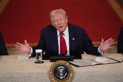 The roundtable came after Trump spent hours with top officials behind closed doors, likely discussing Iran and other major issues. The president announced that he'd met with defense contractors who had agreed to increase weapons production.