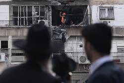Strikes in the Tel Aviv region caused damage at 23 sites and sparked a small fire Sunday.