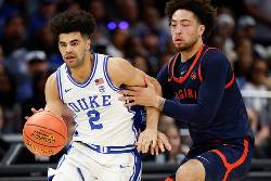 It was back and forth from there until Cayden Boozer put back a weakside rebound to put the Blue Devils up for good at 68-66 with 2:50 left. The Cavaliers couldn't get a shot off in time in their next possession and Duke seized the momentum with Evans, who played high school basketball 20 minutes from the arena, hitting two free throws for a 70-66 lead.