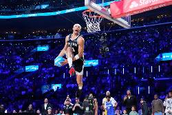 Three-time dunk winner Mac McClung — currently on a two-way contract with the Chicago Bulls — didn't participate. He was the only competitor in history to have a perfect contest, scoring 50s from every judge on all of his dunks last year in San Francisco.