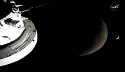 “Such a majestic view out here,” Wiseman radioed once he regained his composure and started picture-taking. The astronauts called down that they managed to capture the moon and Earth in the same shot, and provided a running commentary to scientists back in Houston on what they were seeing.