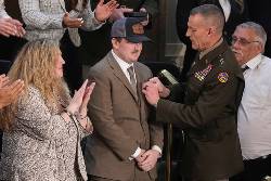 WASHINGTON (AP) — Air Force Staff Sgt. Andrew Wolfe, who survived a gunshot wound to the head while patrolling with the National Guard in Washington last year, was presented the Purple Heart medal during Trump's State of the Union address on Tuesday.