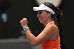 In the earlier quarterfinal at Rod Laver Arena, Rybakina defeated Iga Swiatek 7-5, 6-1 to prevent the Polish player from completing a career Grand Slam of singles titles.