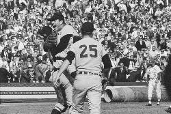 Bill Freehan threw off his catcher’s mask and caught a foul pop-up by Tim McCarver for the final out. Lolich jumped into Freehan’s arms — an iconic image of Detroit’s championship season.