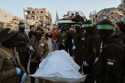 Relatives of the dead Palestinians wept over their loved ones' being transported in white body bags through the city of Khan Younis on Thursday.