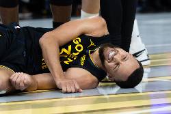 The 37-year-old Curry, in his 17th NBA season, and Houston's Amen Thompson went down hard under the basket with 3:24 remaining and the game tied at 91 after Thompson’s drive to the hoop, which initially was whistled an offensive foul. Houston challenged and the call was overturned to a block by Curry — who grimaced in pain on the floor. He limped to the locker room with 35.2 seconds left.