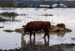 MOUNT VERNON, Wash. (AP) — Surging floodwaters turned farmland into vast pools, washed out bridges and stranded people Thursday, with evacuation orders issued for tens of thousands of Washington state residents and authorities hoping levees prevent far worse damage.