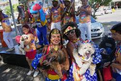 About 300 people and their pets gathered in the neighborhood of Barra da Tijuca, on Rio’s west side. They sang and danced to old-style Carnival songs as their pets kept their paws protected in the shade as Rio's thermometers marked 30 Celsius degrees (86 Fahrenheit).