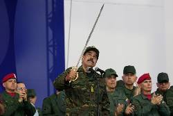On Tuesday, ruling party supporters marched in Caracas to demonstrate what they described as the “anti-imperialist spirit” of Chavismo. The march ended in a ceremony in which Maduro raised a jeweled sword that belonged to South American independence hero Simón Bolívar and guided attendees, including Cabinet ministers, to swear in God’s name to defend peace and freedom.