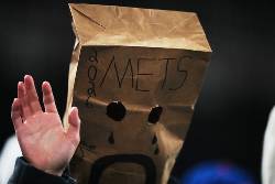 At least a few spectators showed their displeasure with the time-honored tradition of wearing paper bags over their heads.