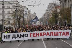 Youth-led protesters drew a red line as they encircled the sprawling buildings in the capital, Belgrade that were partially destroyed in a 1999 NATO bombing campaign. The site faces demolition and redevelopment under a plan backed by the populist government of President Aleksandar Vucic.