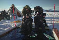 The students must learn more than just diving under ice that's nearly a meter (around three feet) thick and into water temperatures that hover just above freezing. For starters, there's the frigid air temperatures and whipping winds over Lake Kilpisjärvi.
