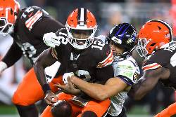 On his first snap, Sanders threw a 5-yard pass to Cedric Tillman with the Browns leading 16-10. He completed both of his passes for 12 yards on his first drive but also fumbled after an 11-yard sack by Ravens safety Kyle Hamilton.