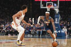 Oklahoma City pushed the lead to 26 points early in the fourth quarter before Phoenix made a final push. Booker made a pull-up jumper and was fouled. He missed the free throw, but he rebounded and made a mid-range jumper to cut Oklahoma City's lead to 110-97 with five minutes to play. The Suns got no closer than 10 points.