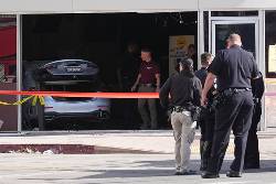 TV news footage showed a silver sedan fully inside the store on Westwood Boulevard.