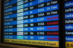 All Saturday flights were canceled at Will Rogers International Airport in Oklahoma City, and all Sunday morning flights also were called off, as officials aimed to restart service Sunday afternoon at Oklahoma’s biggest airport.