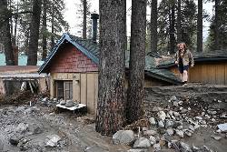 San Bernardino County firefighters said they rescued people trapped in cars when mud and debris rushed down a road leading into Wrightwood, a resort town in the San Gabriel Mountains about 80 miles (130 kilometers) northeast of Los Angeles. It was not immediately clear how many people were rescued.