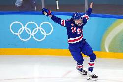 American captain Hilary Knight, in her fifth and final Olympics, forced overtime by tipping in Laila Edwards’ shot from the blue line with 2:04 remaining. The goal was the 15th of her Olympic career and 33rd point to break the U.S. record in both categories.