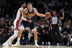 Jokic was alone under the basket and appeared to step forward to help Denver’s Spencer Jones defend a drive by Miami’s Jaime Jaquez Jr. as time was about to expire in the second quarter. While backtracking, Jones stepped on Jokic’s left foot and it seemed the center’s knee buckled a bit.