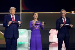 On a day that began with snow falling on the nation's capital, the ceremony at the Kennedy Center for the Performing Arts included U.S. President Donald Trump receiving a newly created peace prize awarded by FIFA, soccer's governing body. Trump, Mexican President Claudia Sheinbaum and Canadian Prime Minister Mark Carney picked up plastic spheres containing their own nations' names from bowls — Sheinbaum drew more applause from those gathered in the hall than Trump.