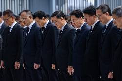 The city lowered flags to half staff in mourning, and Chief Executive John Lee, led a three-minute silence Saturday from the government headquarters with officials all dressed in black.
