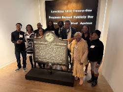 ATLANTA (AP) — A historical marker from the site of a 1918 lynching that was repeatedly vandalized in recent years is now safely on display in Atlanta in an exhibit that opens Monday.