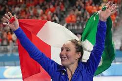 Racing with Maltais, Lollobrigida trailed at the first checkpoint. But the Italian kept gaining ground and, perhaps boosted by the loud support from her countrymen in the seats, surged on the final lap, arms swinging behind her.