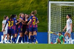 Ewa Pajor scored twice, and Esmee Brugts, Irene Paredes, Vicky López and Alexia Putellas added a goal each in Madrid to take the Catalan club a step closer to the last four.