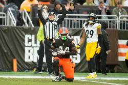 A 3-yard completion to Adam Thielen on first-and-10 got the Steelers to the Browns 7, but Rodgers was unable to connect with Marquez Valdes-Scantling on the next three plays. Denzel Ward blanketed Valdes-Scantling on a pass to the right corner of the end zone on fourth-and-7 with 17 seconds remaining as Pittsburgh turned it over on downs.