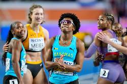 TORUN, Poland (AP) — Bahamas sprinter Devynne Charlton matched her own world record by clocking 7.65 seconds to win the 60-meter hurdles at the World Indoors for the third straight year on Sunday.