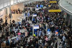 The scene appeared more chaotic at John F. Kennedy International Airport in New York. Large crowds of anxious travelers piled toward security checkpoints, and TSA staff shouted through megaphones to tell people not to push one another.