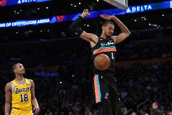 The French big man went 8 of 9 from the field with three 3-pointers in those first eight minutes. He went on to a 37-point first half while leading San Antonio to a 30-point lead over the Lakers, who were without Luka Doncic, LeBron James and Austin Reaves.