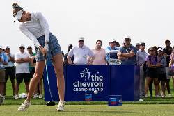 She took on another front pin at the par-3 15th in a narrow part of the green. That settled 8 feet behind the pin. The birdie putt never had a chance.