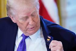 WASHINGTON (AP) — President Donald Trump insists he's never happy. But now he has a lapel pin that is.