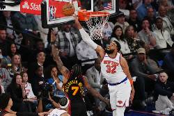 With the Knicks up by eight, Towns hit a 3-pointer, and after Gabe Vincent's basket, Jordan Clarkson had two buckets and Towns had a three-point play and a 3-pointer for a 10-0 burst that made it 106-87 with about 4 1/2 minutes remaining.