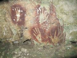 The tan-colored prints analyzed by Indonesian and Australian researchers on the island of Sulawesi were made by blowing pigment over hands placed against the cave walls, leaving an outline. Some of the fingertips were also tweaked to look more pointed.