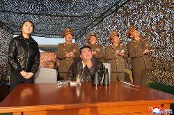 Kim oversaw the launches of five upgraded surface-to-surface Hwasong-11 Ra ballistic missiles with cluster bomb warheads and fragmentation mine warheads, KCNA said.