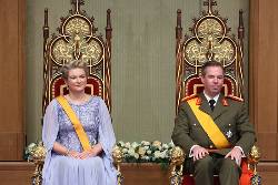 Flanked by his wife, the new Grand Duchess Stéphanie, Grand Duke Guillaume, 43, swore the oath in Luxembourg's parliament and took the throne.