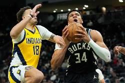 MILWAUKEE (AP) — Giannis Antetokounmpo left Milwaukee’s game against the Indiana Pacers on Sunday after landing awkwardly as he completed a dunk late in the third quarter of the Bucks’ 134-123 victory.