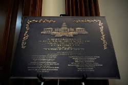 Determined to preserve the nation's history, some 100 members of Congress, mostly Democrats, have taken it upon themselves to memorialize the moment. For months, they've mounted poster board-style replicas of the Jan. 6 plaque outside their office doors, resulting in a Capitol complex awash with makeshift remembrances.