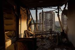 In the wider Kyiv region, Russian strikes damaged critical infrastructure and private homes, injuring at least one civilian, the head of the regional military administration, Mykola Kalashnyk, said. A 55-year-old man in Bila Tserkva suffered burns and was hospitalized, he said. Fires broke out in private houses in the capital's suburbs.