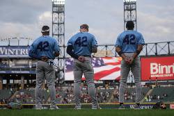 CHICAGO (AP) — A singer leading the “Jackie Robinson Day” festivities before the Chicago White Sox's game against the Tampa Bay Rays on Wednesday night collapsed and was taken to a hospital.