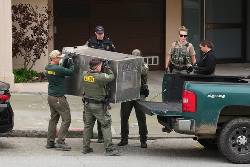 The mountain lion was found Tuesday hiding in a garden between two apartment buildings, San Francisco Fire Department Lt. Mariano Elias said. Authorities shot the feline with tranquilizers three times “to make sure it was completely unconscious,” Elias said. “They covered his eyes and bound its paws, just to make sure it wasn’t going to run anywhere.”